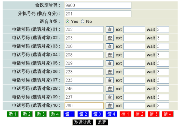 選中會(huì)議后,點(diǎn)擊邀請(qǐng)按鈕,會(huì)議橋會(huì)根據(jù)會(huì)議中設(shè)定的與會(huì)成員的電話號(hào)碼發(fā)起自動(dòng)呼叫,并將對(duì)方接入會(huì)議。