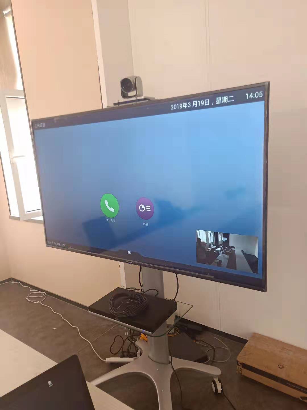 蘭州**商業(yè)管理有限公司作為該控股公司旗下子公司,急需建設(shè)一套視頻會(huì)議,與上海、重慶等地召開(kāi)視頻會(huì)議,為著快速部署,本次采用寶利通GROUP310+65寸電視+移動(dòng)支架方式。