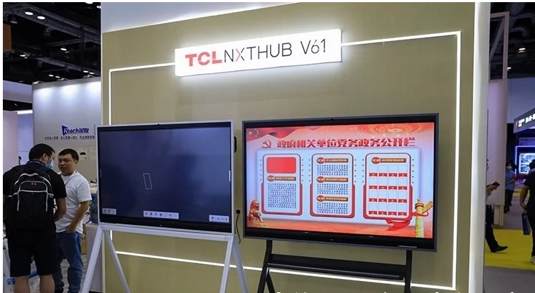除了TCL NXTHUB V60會議大屏外,TCL還展示了雙屏?xí)h解決方案和NXTHUB V61會議大屏設(shè)備,NXTHUB V61在配置上與TCL NXTHUB V60一樣,區(qū)別主要在于NXTHUB V61沒有內(nèi)置釘釘應(yīng)用,但也可